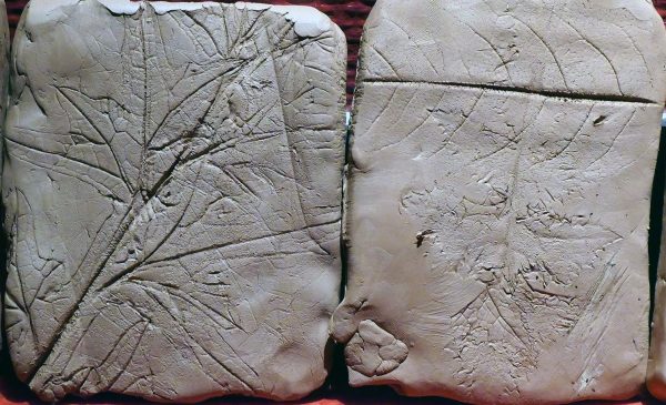 Également, les tablettes de terre habitées des « fossiles » végétaux disposées au sol invitent les visiteurs à se rapprocher du sol afin d’en découvrir les subtilités graphiques.