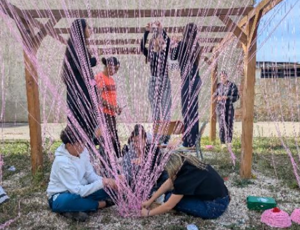 Ce projet s’inscrit dans les cours d’éducation artistique, sous forme d’exercice pratique. L’objectif : concevoir une œuvre d’art contemporaine en tissage, à partir d’une structure en bois déjà existante, et en lien avec la campagne de sensibilisation Octobre Rose mise en place de manière importante dans notre Lycée.