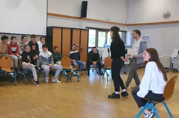 Dans le cadre d’un projet « le théâtre au service de l’école », deux comédiens de la compagnie « Théâtre de la manufacture » ont proposé aux élèves de seconde et de première une activité théâtrale afin de les aider à mieux aborder leurs épreuves orales à venir.