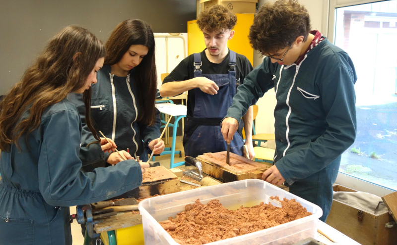 Traces de végétaux, empreintes à l’encre, fusion de matière en fonderie : en novembre 2025, des élèves de Terminale Bac Pro du lycée Jules Rieffel ont passé une semaine entière aux côtés de deux artistes plasticiens pour explorer, par le geste et la matière, ce que « transition » peut dire.