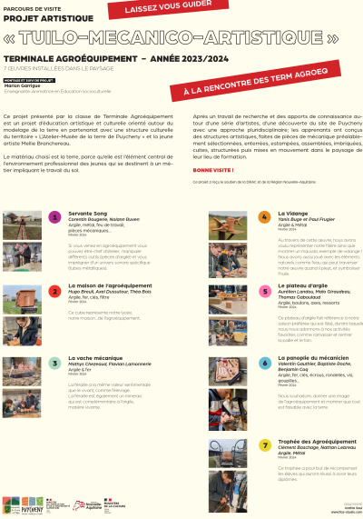 Le projet artistique porté par le lycée agricole André Guillaumin est construit en partenariat avec L’Atelier-Musée de la terre de Puycheny, structure culturelle du territoire. Ce site est à la fois un lieu de mémoire et de transmission autour de la fabrication de tuiles anciennes.